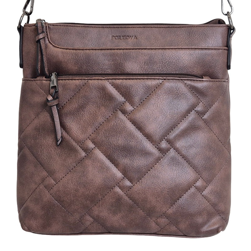 This crossbody bag exudes refined elegance with its deep colour and intricate quilted diamond stitching, creating a textured, sophisticated look. The structured yet supple design ensures practicality while maintaining a polished appearance, making it ideal for both casual and formal settings.