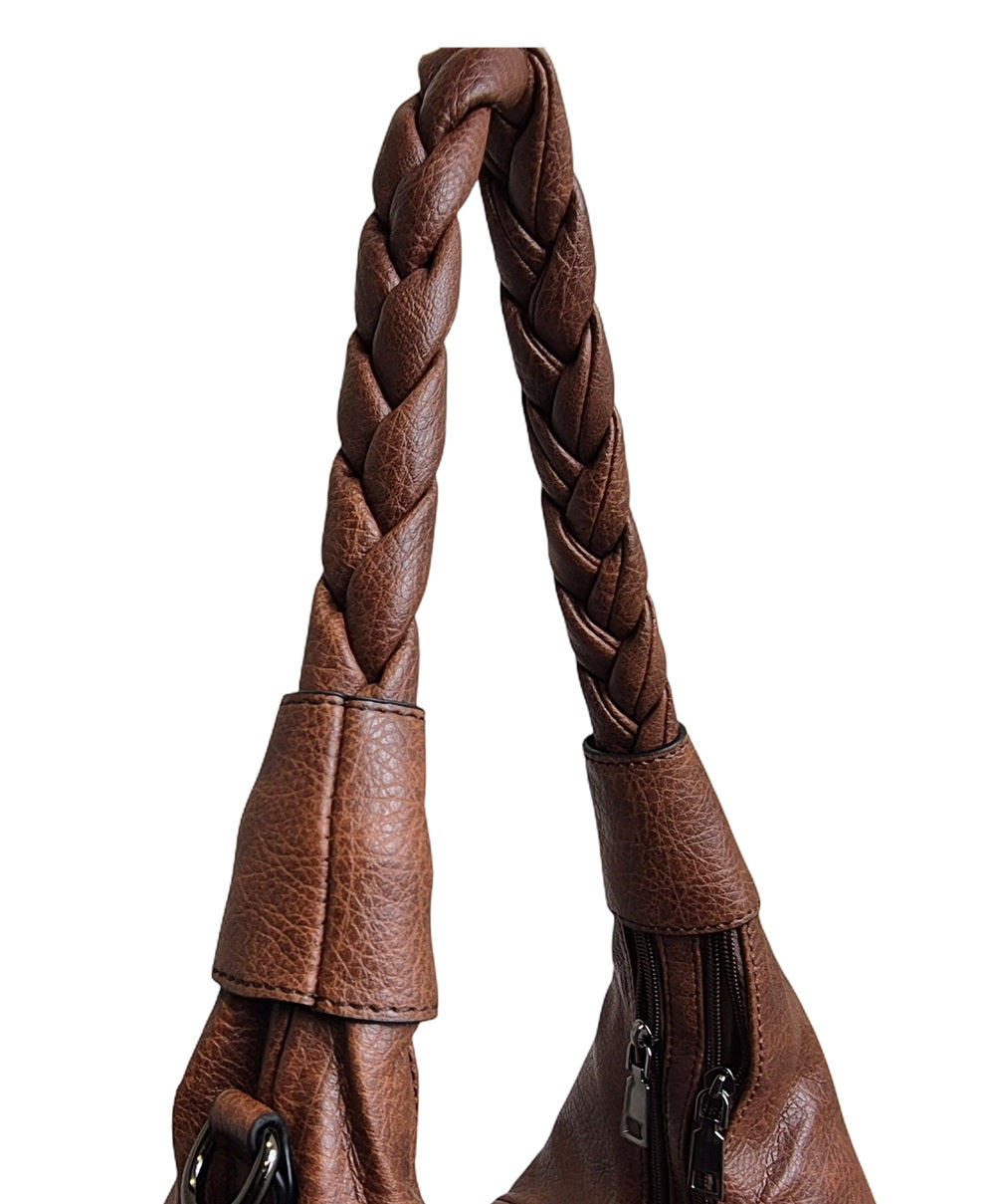 Crafted from rich, textured faux leather, this cream hobo handbag offers a blend of style and practicality. Its spacious interior and front zip pocket provide easy organization, while the braided shoulder strap adds a unique touch. Perfect for everyday use, it pairs effortlessly with both casual and polished outfits.